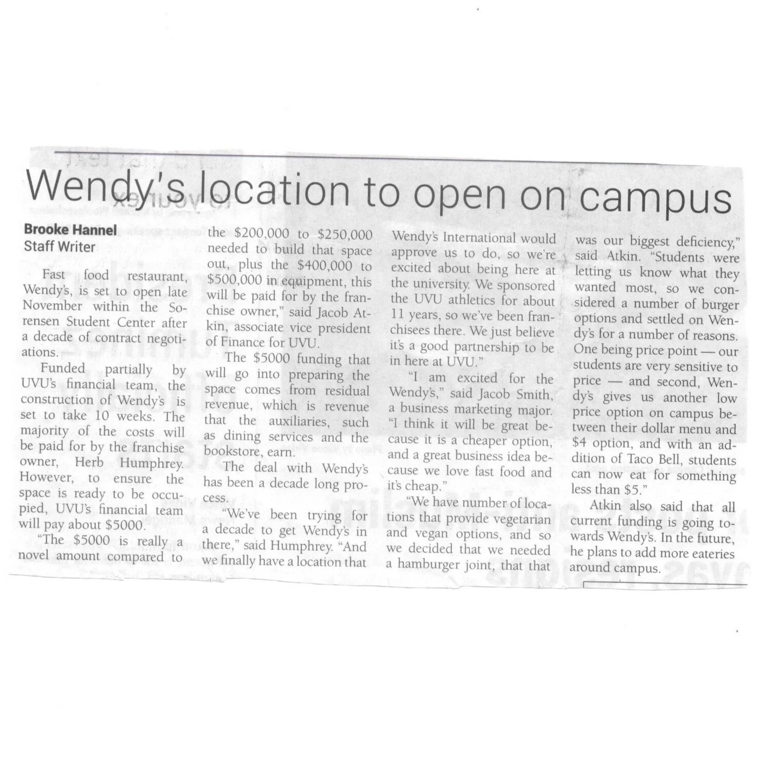 “We’ve been trying for a decade to get Wendy’s in there,” said Humphrey. “And we finally have a location that Wendy’s International would approve us to do, so we’re excited about being here at the university. We sponsored the UVU athletics for about 11 years, so we’ve been franchisees there. We just believe it’s a good partnership to be in here at UVU.”